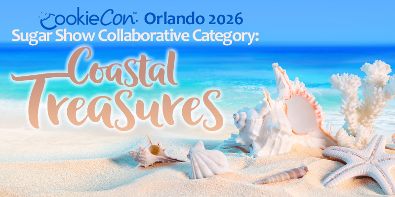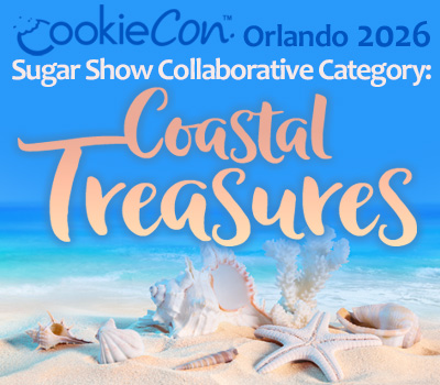 Attendees will be contributing to an awesome collaborative display of Coastal Treasures! This Sugar Show category will NOT BE JUDGED. Enjoy the magic that happens when we all come together to create the beautiful display of sea shells, star fish, sand dollars, sea glass, and other seaside treasures. Bring your coastal cookie creations & contribute to this captivating display!