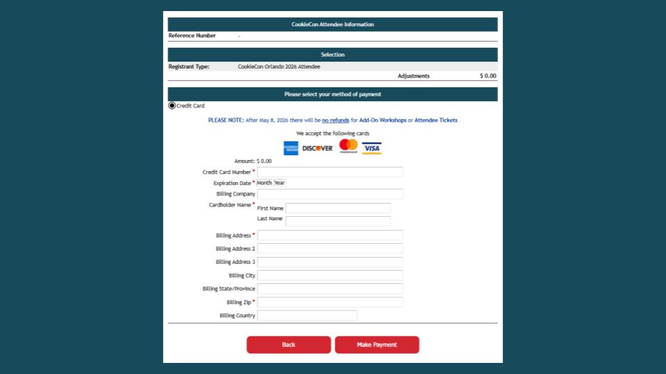 Once you’ve completed registering, you’ll finish up at the payments page. You’ll be able to review your total, fill out your credit card and billing information, and make your payment securely online. And that’s really all there will be to the process!